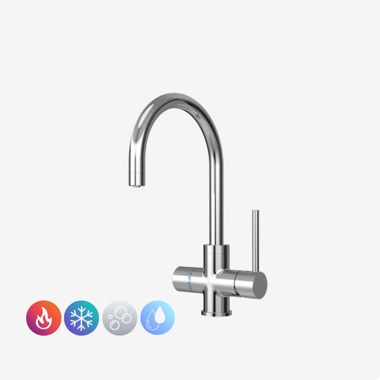 Touch-activated luxury tap delivering hot, chilled, sparkling and ambient water.