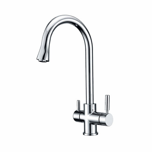A versatile tap combining a kitchen mixer with an instant tap delivering boiling, chilled and sparkling water. All-in-one.